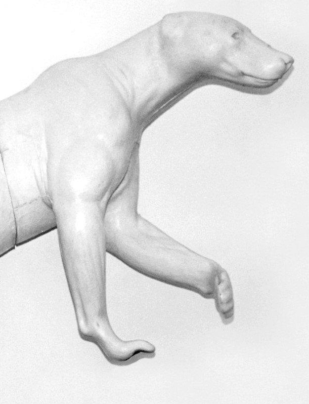 Half life size. Walking, left front foot off ground. R.T., C.M.