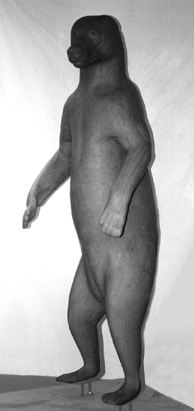 On hind legs, head turned left, C.M.