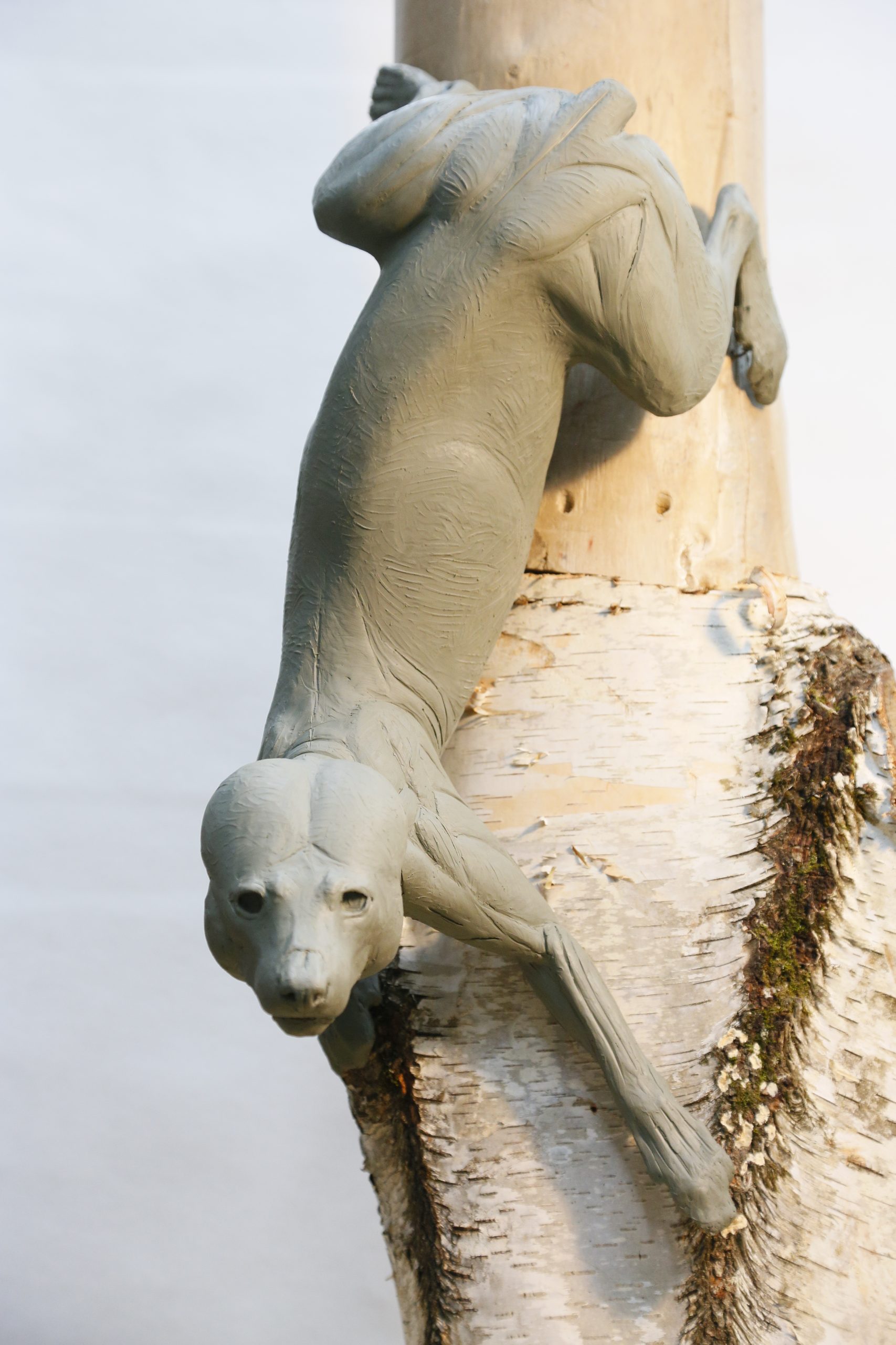Climbing down tree, L.T., C.M.