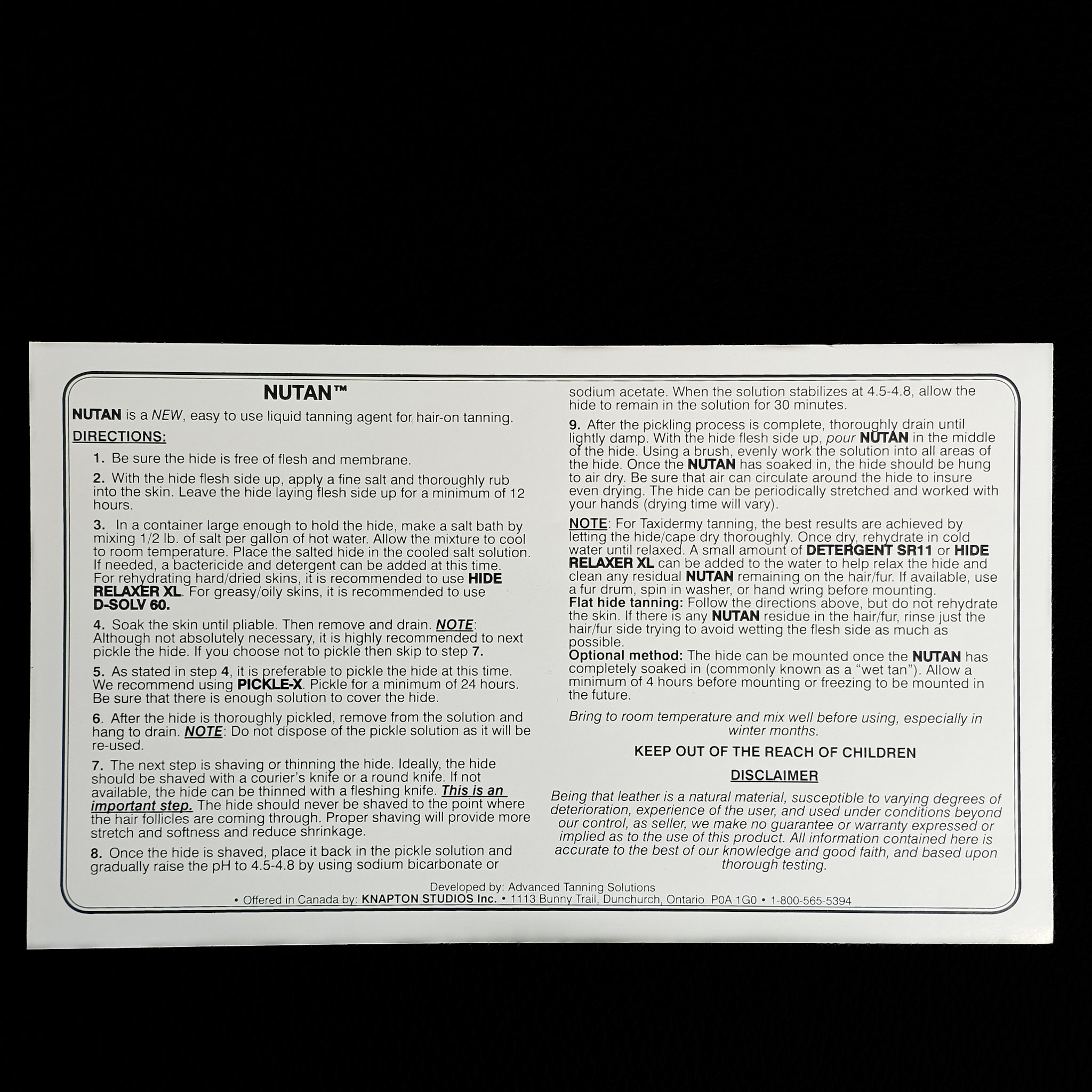 A complete and permanent tan. Fast drying, compatible with paste. Can be applied and mounted same day. Will treat approx 4-5 average size capes