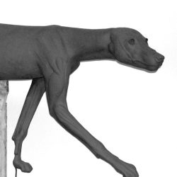 Walking, front left foot off ground, R.T., C.M.